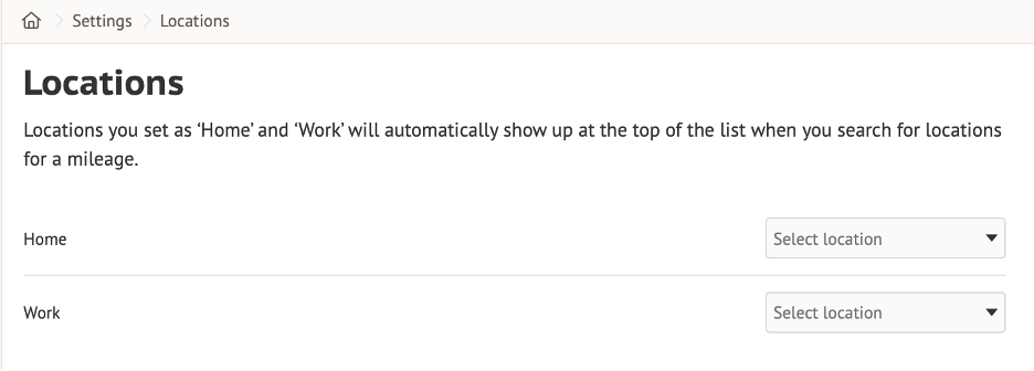For quicker access to places you visit frequently, you can save up to two locations as favorites. To save your address/es, go to **Settings - Locations** and add addresses as your Home and Work locations.